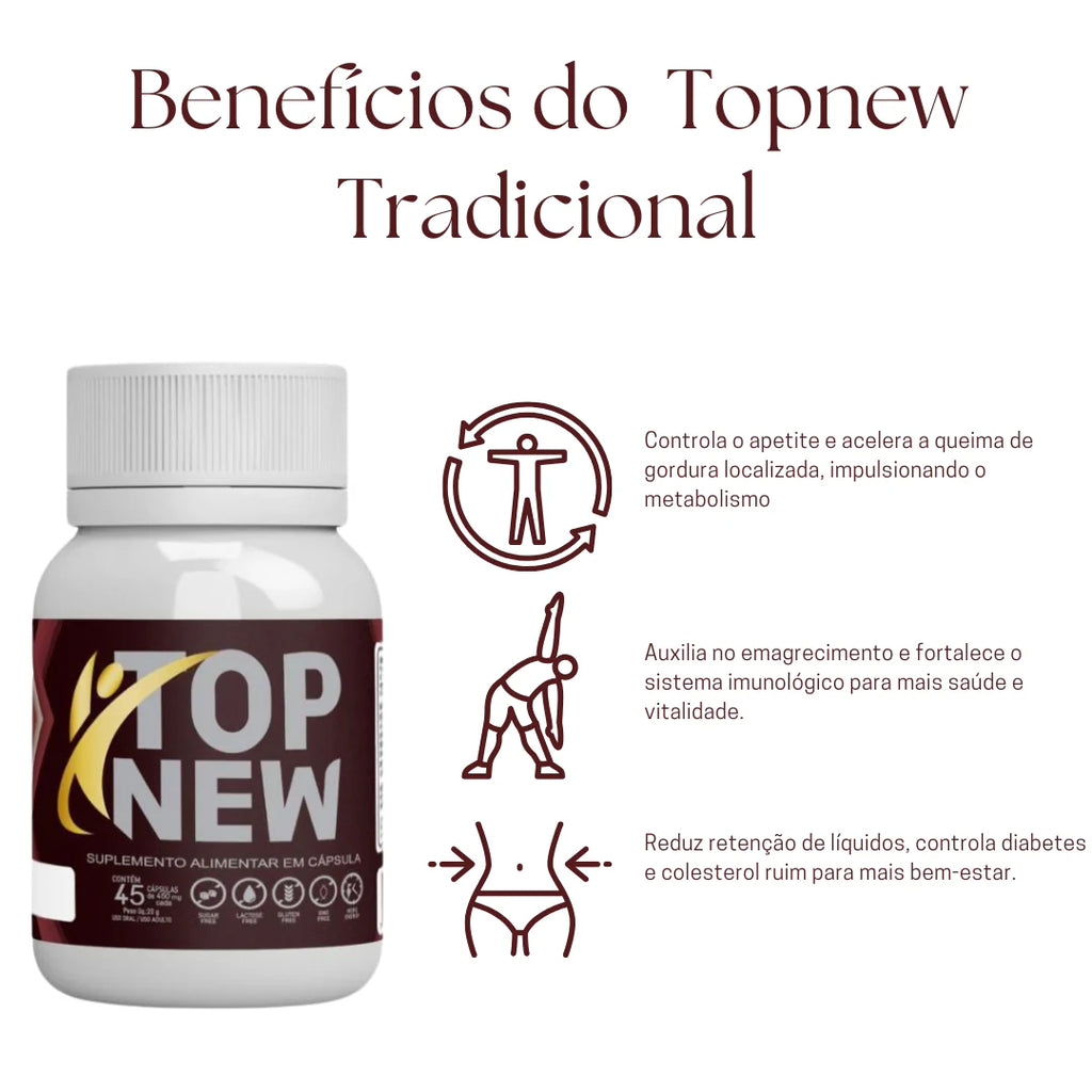 O TopNew é um suplemento alimentar e não um emagrecedor milagroso. Para melhores resultados, mantenha uma alimentação saudável e equilibrada.